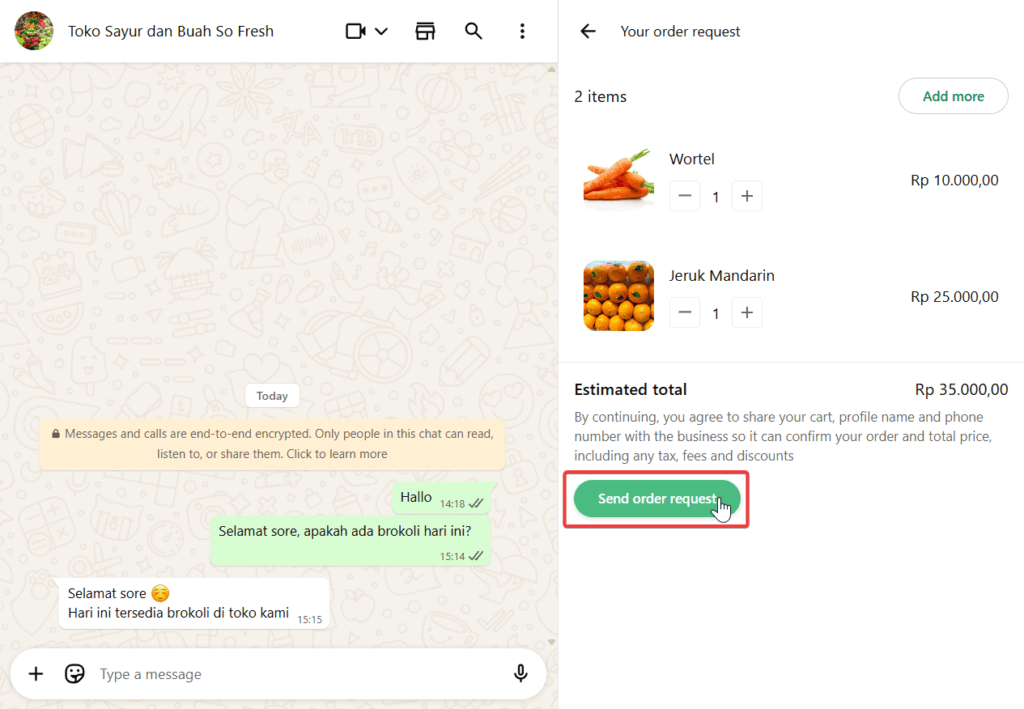 Setelah menerima pesanan Anda, bisnis akan menghubungi Anda untuk membahas opsi pembayaran.