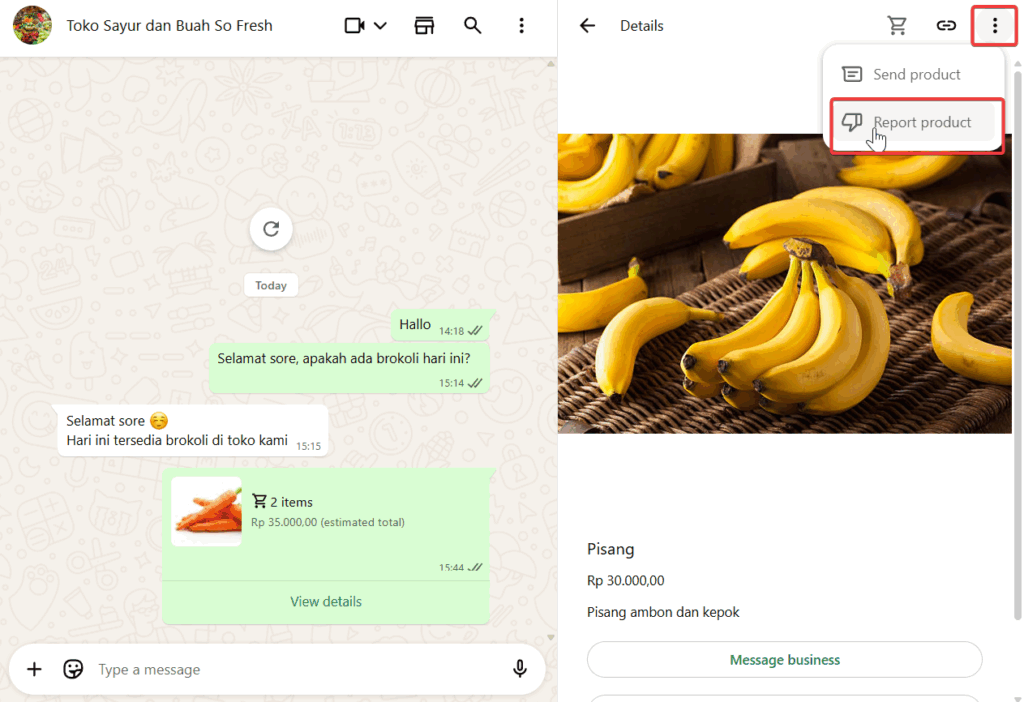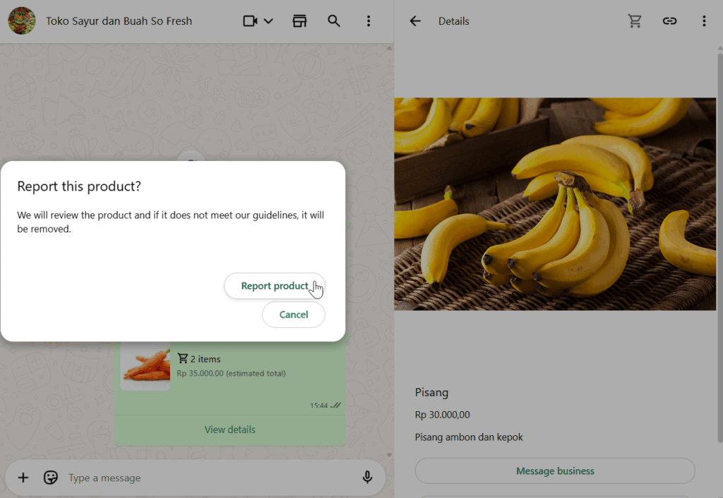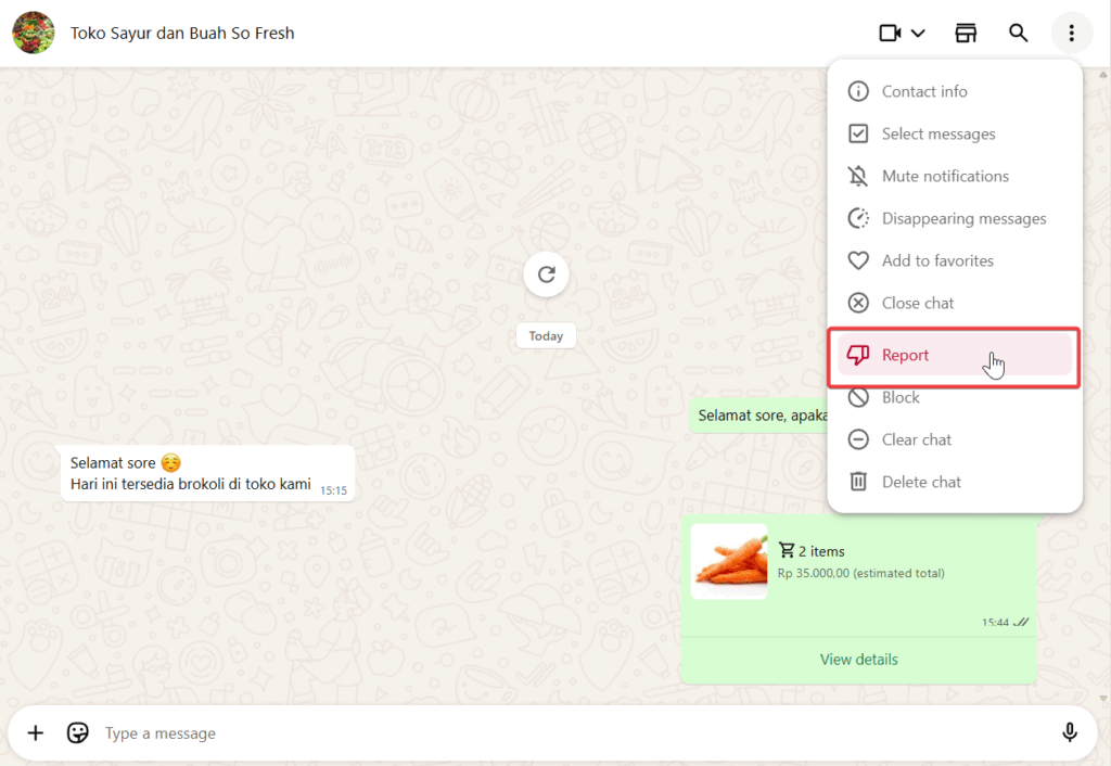 Jika pperangkat Anda berhasil terhubung, tetapi bisnis tersebut masih belum merespons, atau jika Anda yakin bisnis melanggar Kebijakan Berkirim Pesan WhatsApp Business, Anda dapat melaporkannya.