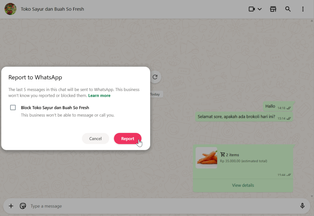 - Untuk hanya melaporkan bisnis, klik Laporkan.