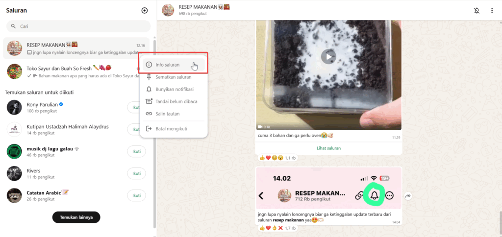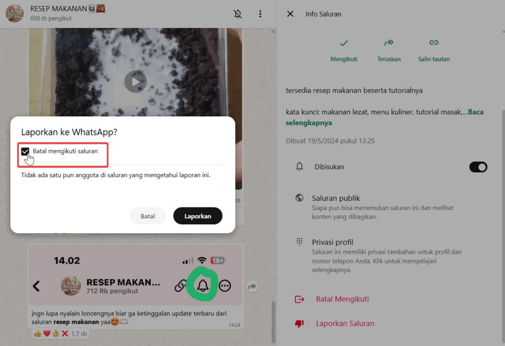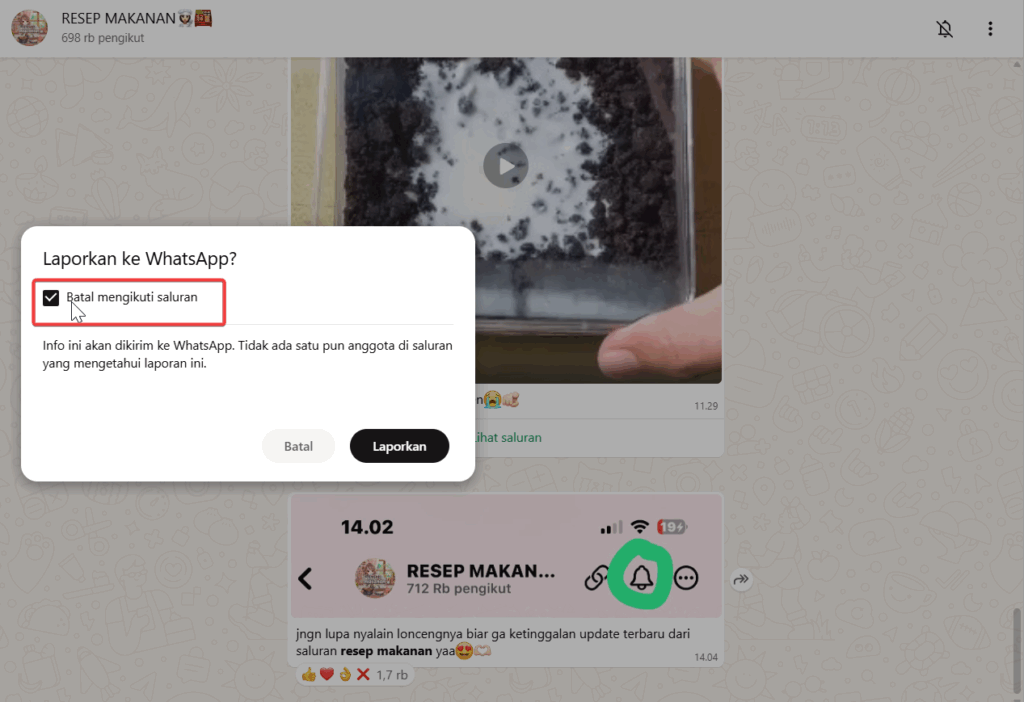 - Klik Batal mengikuti saluran untuk berhenti menerima info dari saluran ini.