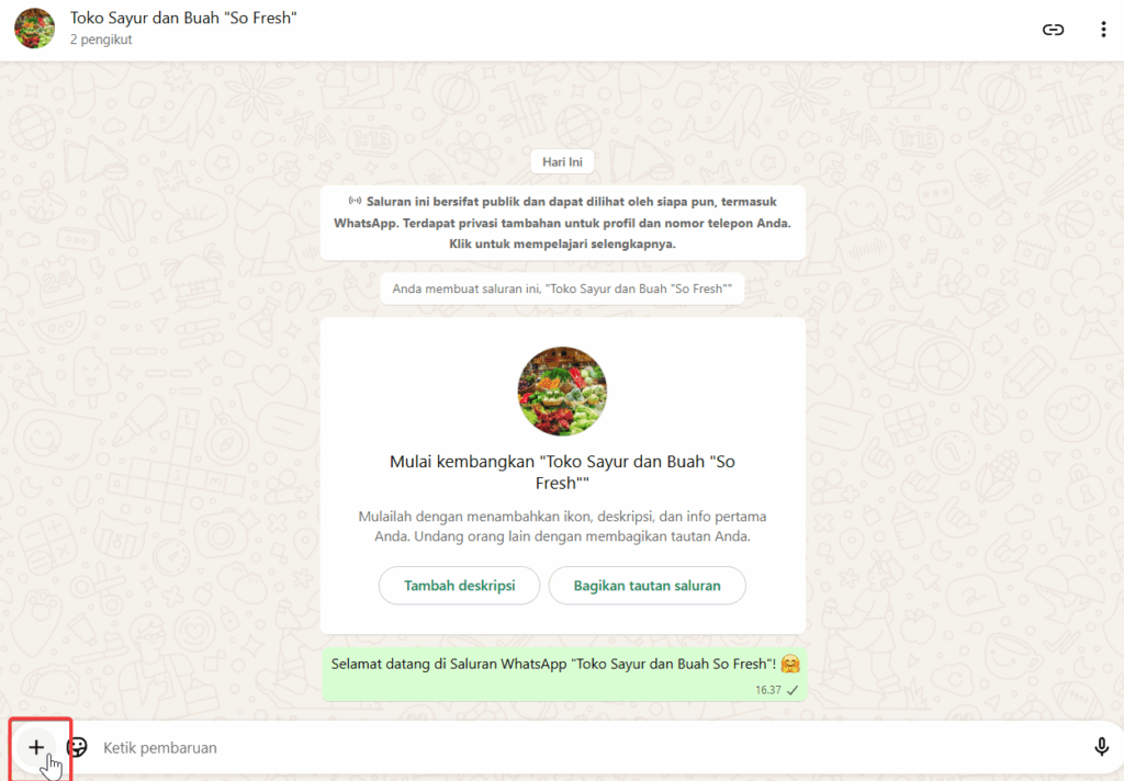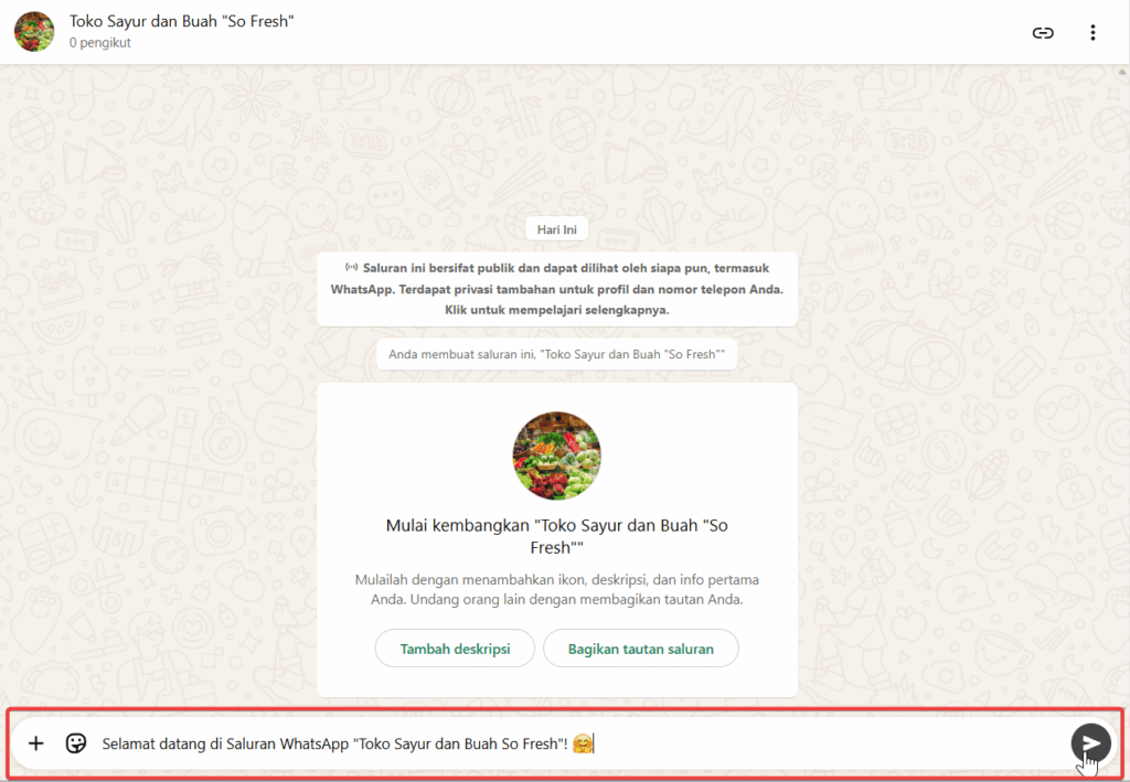 Langkah-langkah untuk membagikan info melalui saluran hampir sama seperti mengirim pesan ke obrolan dengan menggunakan WhatsApp, namun masih tetap ada perbedaan utama.