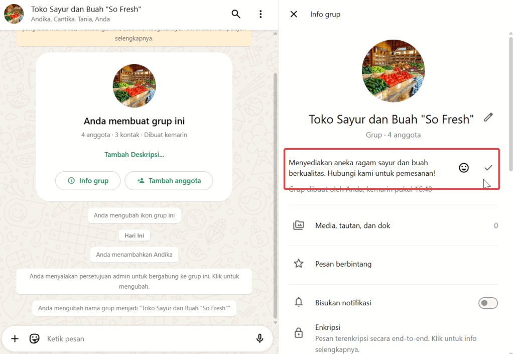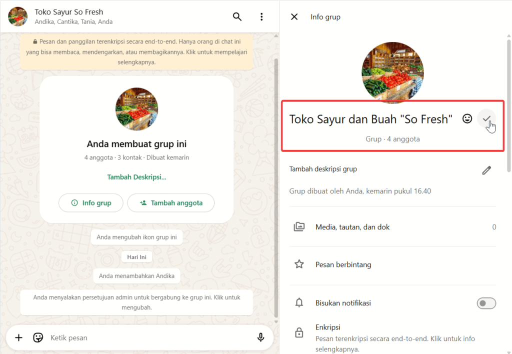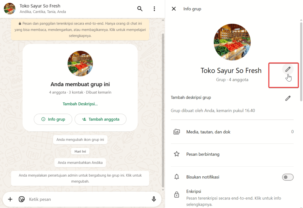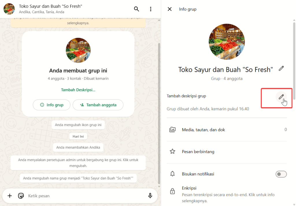 1. Klik Edit (pensil)  di samping deskripsi grup.