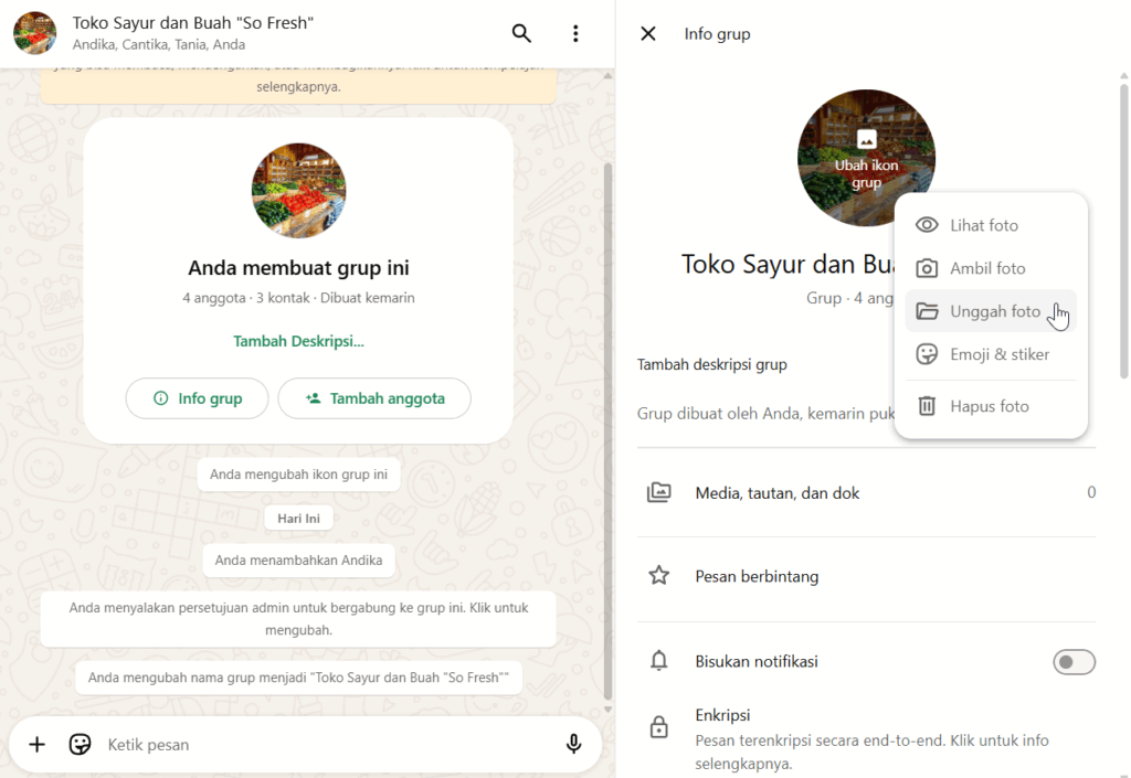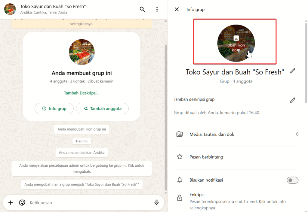 Setelah ditambahkan, ikon grup akan ditampilkan di samping nama grup di daftar obrolan.