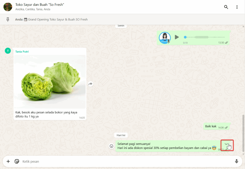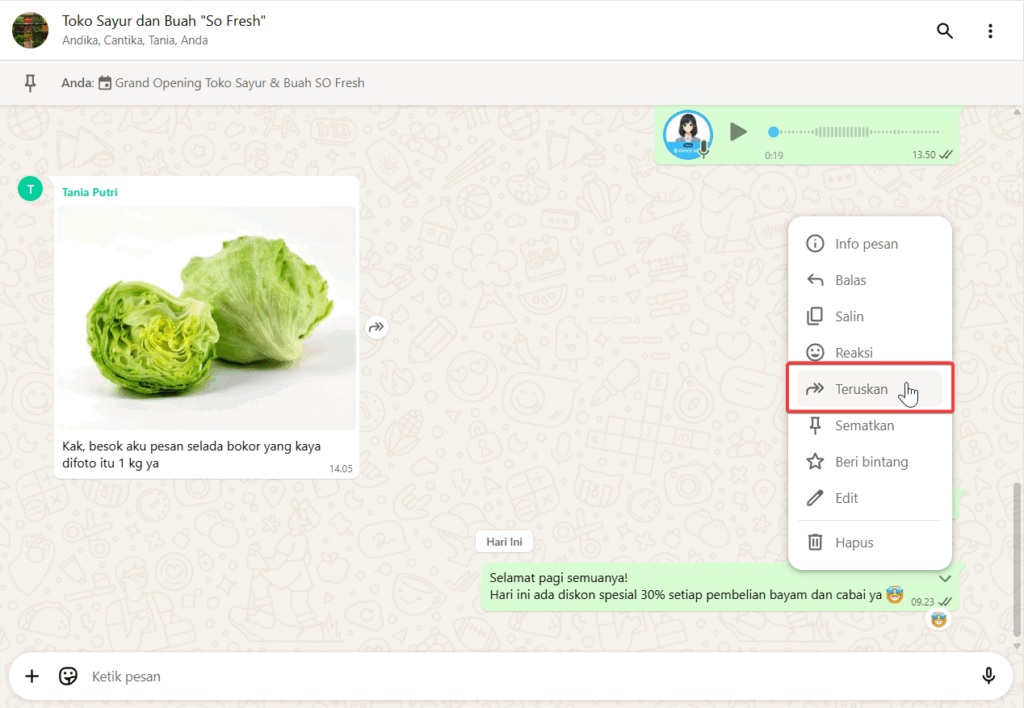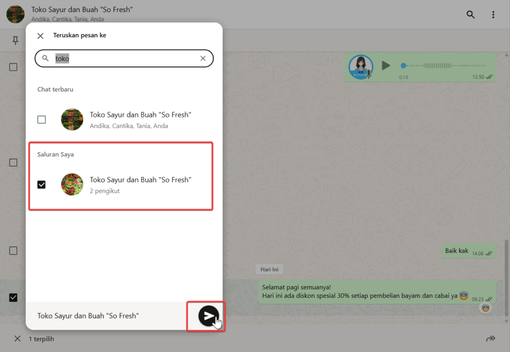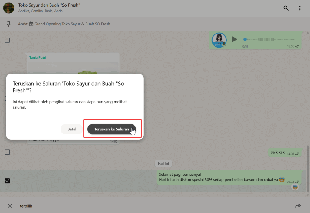 Pesan atau info yang diteruskan disaluran akan dilabeli “Diteruskan”. Tautan ke saluran asal yang memposting info akan disertakan dalam info yang diteruskan.