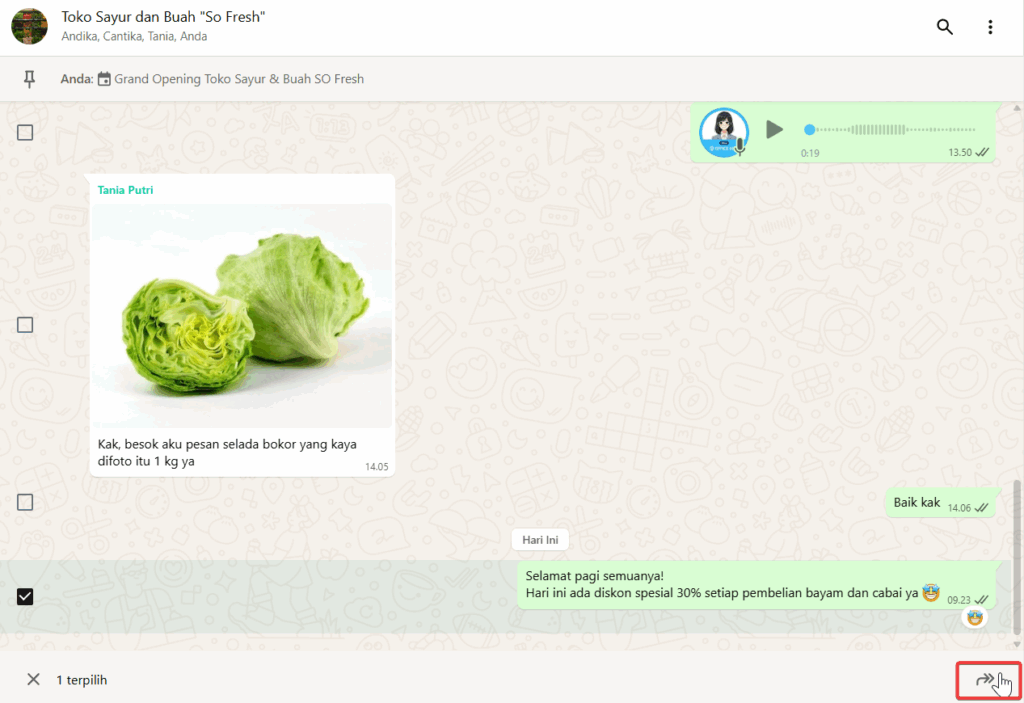 - Untuk meneruskan beberapa, klik pesan atau info lainnya setelah memilih yang pertama.