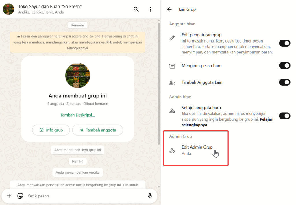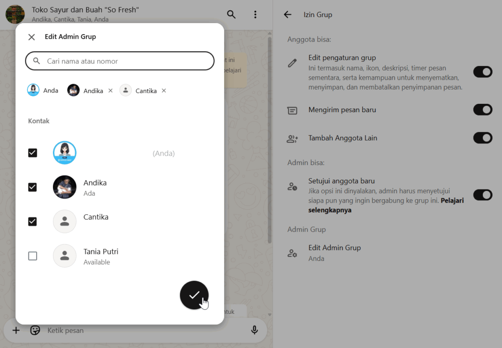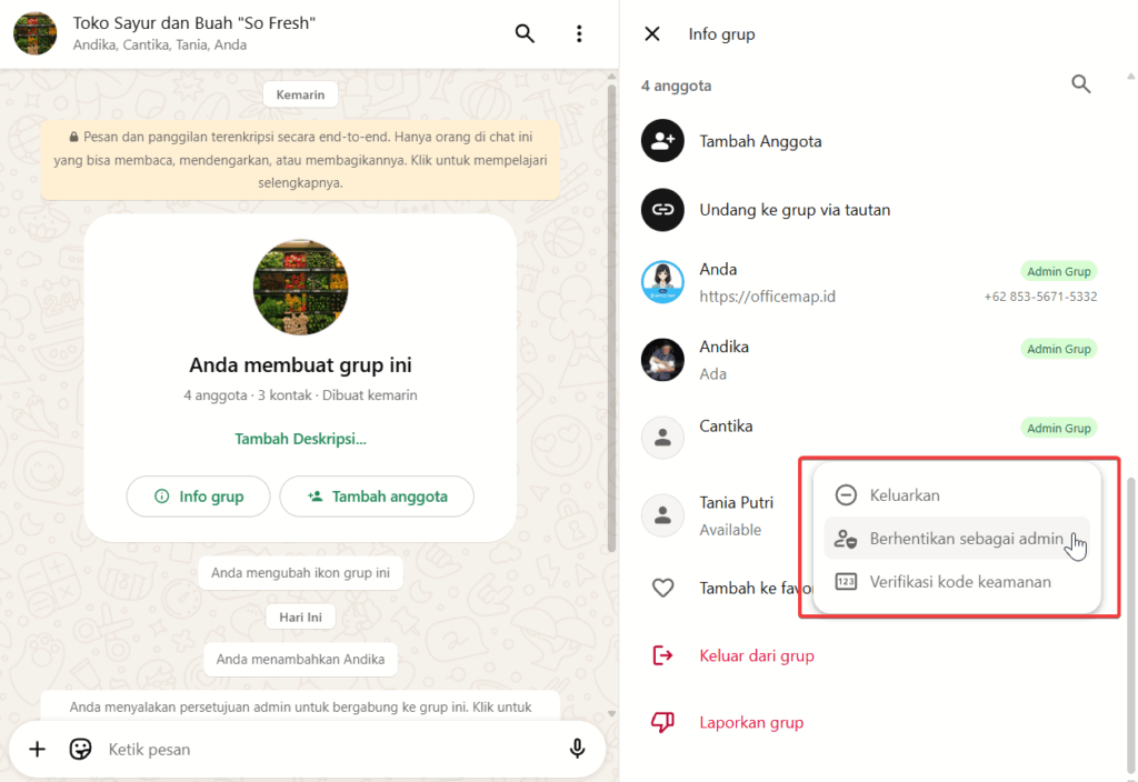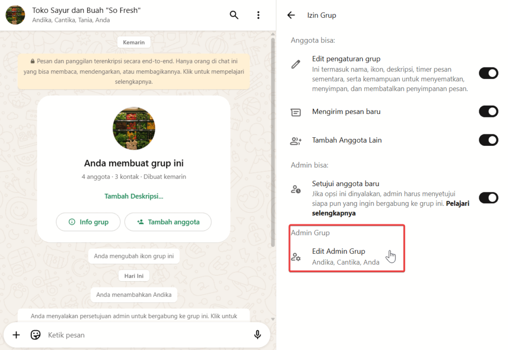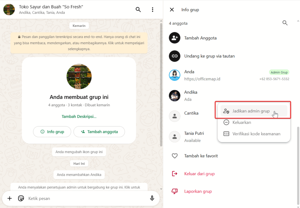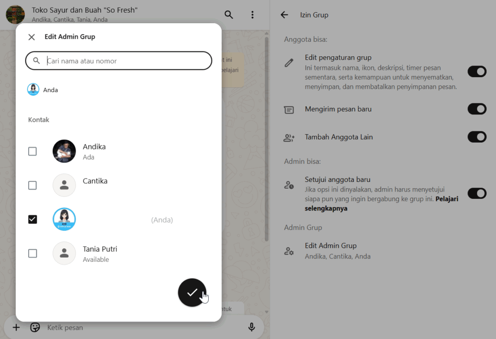 Jika Anda adalah admin grup, Anda bisa menjadikan anggota lain di grup sebagai admin.