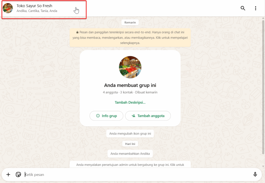 - Buka obrolan grup WhatsApp, lalu klik subjek grup.