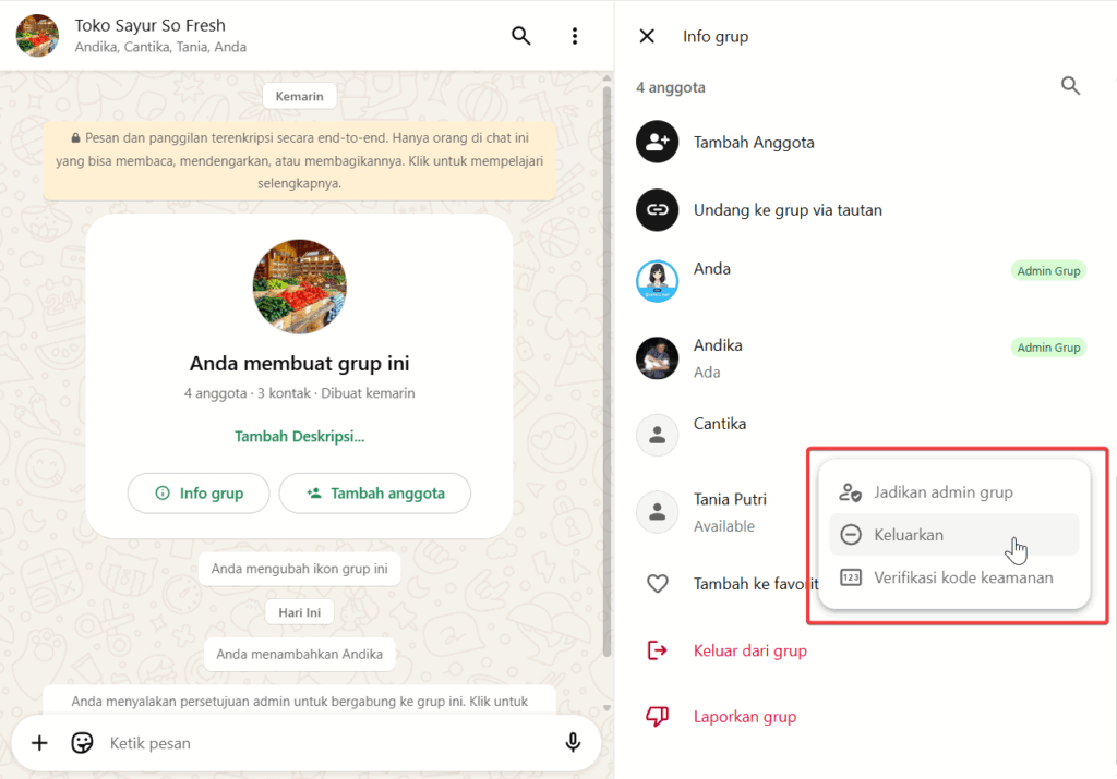 Berikut merupakan langkah-langkah untuk mengeluarkan anggota dari grup: