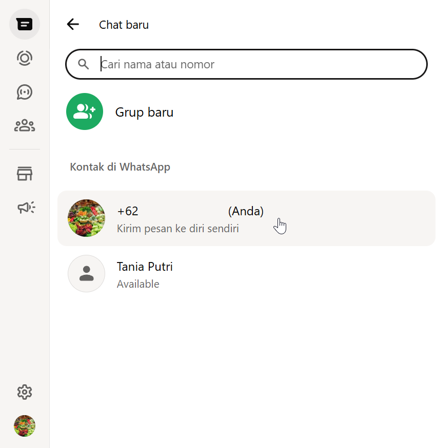 Di WhatsApp, anda bisa mengirim pesan kepada diri sendiri. Berikut langkah-langkahnya: