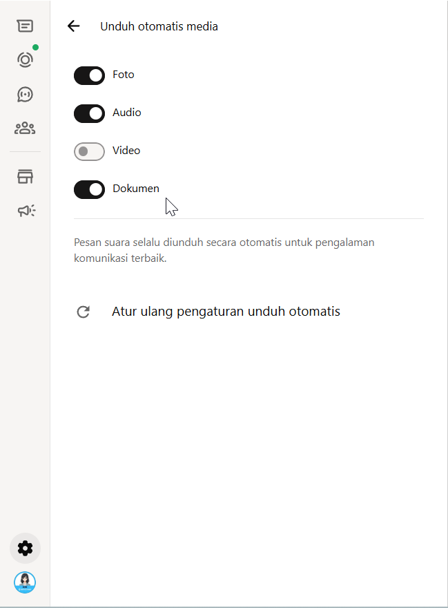 Mengonfigurasi Pengunduhan Otomatis Foto, Video, atau Pesan Suara