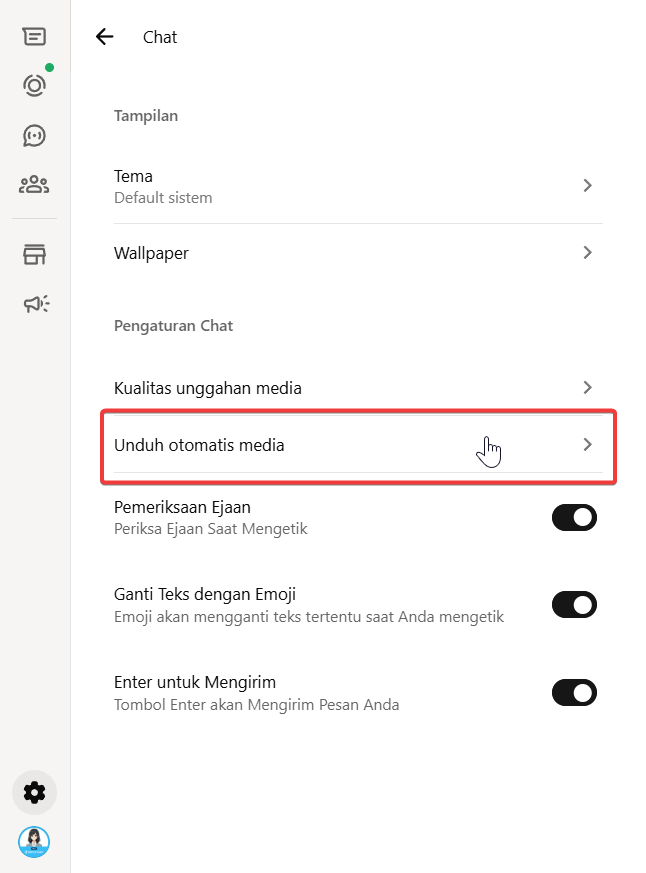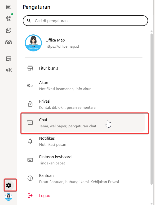 1. Klik Pengaturan (gir hitam) untuk pengaturan, kemudian pilih Chat.
