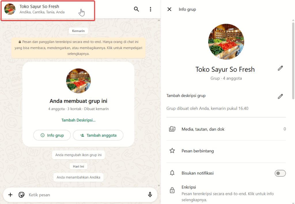 1. Buka chat grup WhatsApp, lalu klik nama grup.