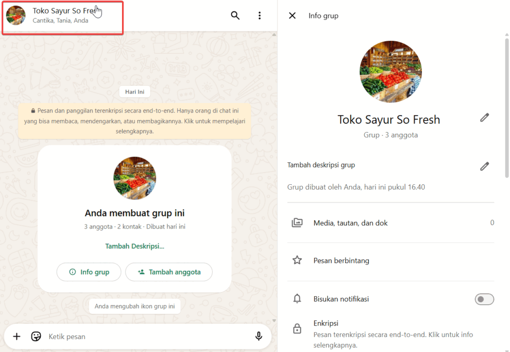 - Buka obrolan grup WhatsApp, lalu klik subjek grup