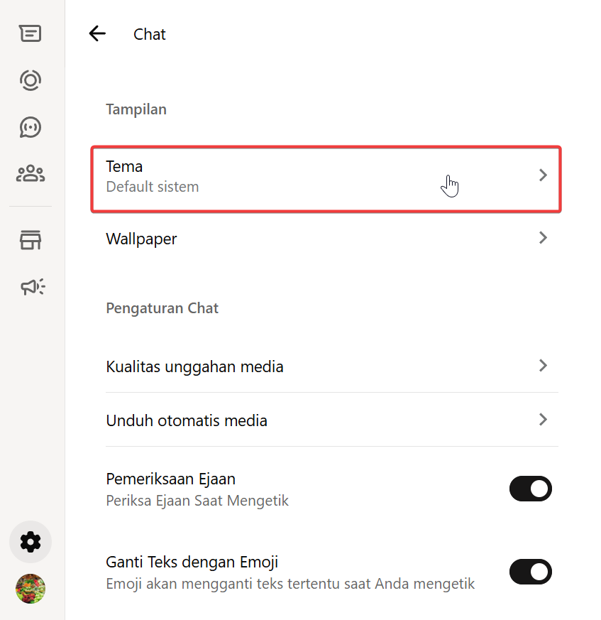 WhatsApp memiliki dua pilihan tema yaitu terang dan gelap. Anda bisa menyesuaikan tema yang ingin Anda pakai. Berikut merupakan langkah-langkah untuk mengatur tema: